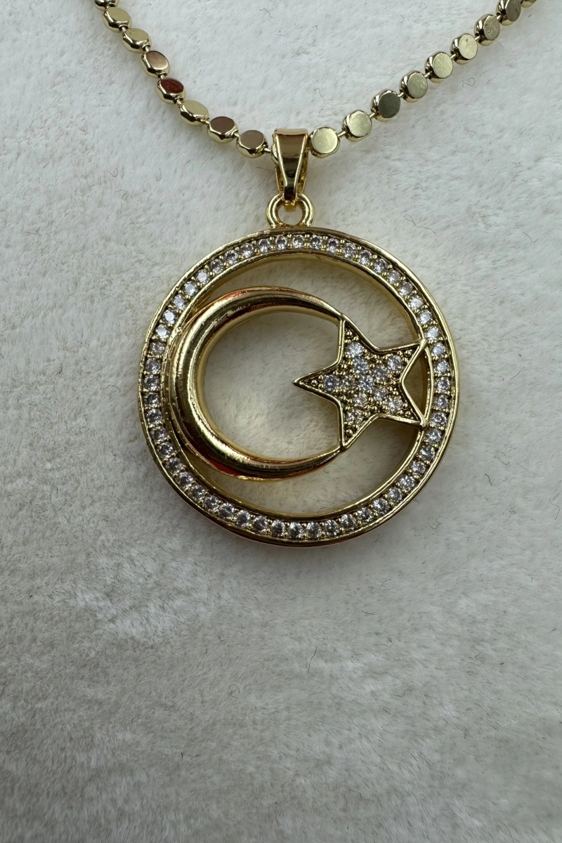 SOLI 14K 316L STAINLESS STEEL ROUND MOON STAR NECKLACE